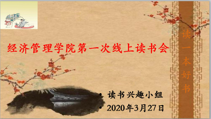 本次线上读书会是该院培育和践行经管人精神系列活动之一,也是该院书香经管品牌活动之一,旨在积极营造良好的知识环境和文化氛围,为开学后的读书会打下良好基础,用实际行动为打赢防疫攻坚战作出贡献。