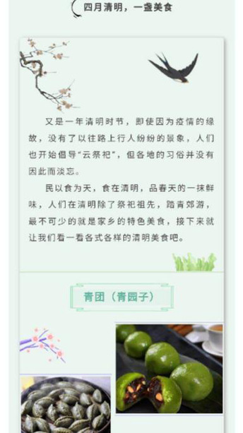 该院团总支云征集了各式各样的清明美食以及各地特色习俗,希望通过这些一系列的活动,能让该院学子感受到了传统文化的独特魅力,更加深爱我们这个古老的民族,在家也能度过一个有意义充实的清明节。
