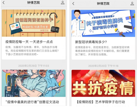 艺术学院积极抗击新冠肺炎疫情,落实教育部“停课不停教、停课不停学”工作要求和学校党委工作部署,积极行动,发挥能动,强化联动,精心打造云端战“疫”立德树人“四阵地”。
