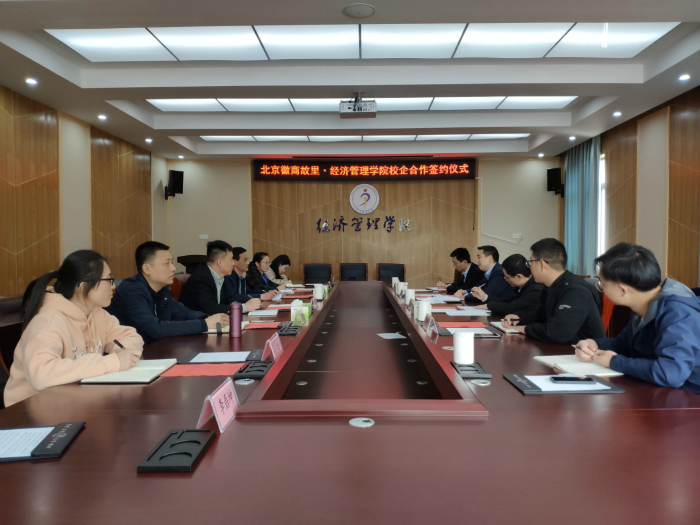 4月17日,北京徽商故里餐饮管理有限公司集团副总经理金荣华一行来经济管理学院考察交流,经济管理学院院长赵士德与金荣华代表双方签订协议,学生处副处长汪双安应约参加签字仪式,仪式由经济管理学院党委副书记吴边主持。