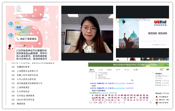 4月17日,外国语学院利用QQ直播平台,采用“互联网+就业”新模式,成功举行了2020届毕业生视频双选会。该院党政领导,毕业班辅导员,16级全体毕业生参加双选会。