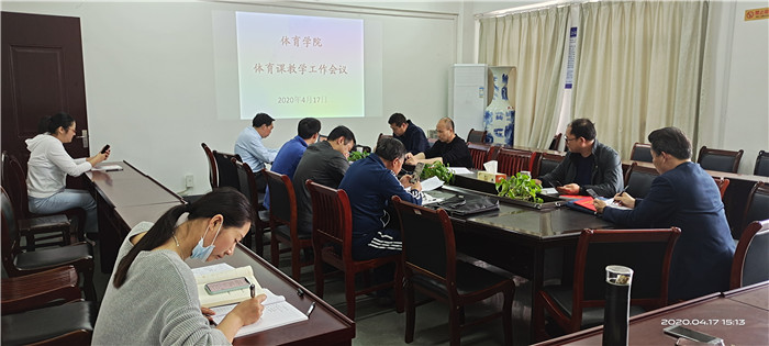 会后,社会体育指导与管理、休闲体育、大学体育三个教研室分别召开了会议,就落实线上教学任务、基本教学材料的准备、教学过程的考勤、线上教学的技术措施等进行了交流。