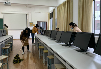 支部成员还到三楼视觉传达实验室进行了彻底清扫。大家明确各自分工,将实验室电脑、桌子及地板彻底搽拭干净,为学生返校复学创造良好环境。
