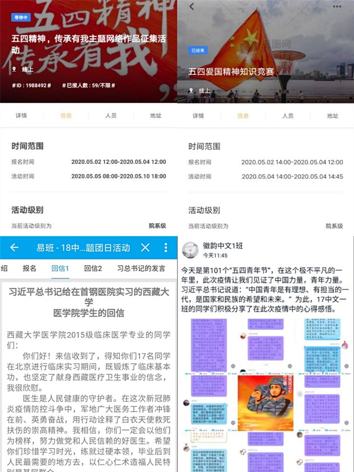 此次活动通过开展“五四”知识竞赛、主题网络作品征集和“五四”最美疫情防控志愿者评选等活动,帮助同学们深刻领会“五四”精神内涵,进一步强化爱国主义精神,从战“疫”中坚定制度自信。让青春在党和人民最需要的地方,绽放绚丽之花!