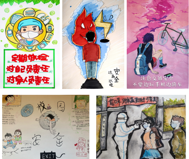 本次活动通过兴趣引导,让更多同学主动参与到校园安全学习中来,从而达到提高同学们安全防范的能力。同学们通过手中的画笔,结合自身经历和创造力,画出符合安全宣传主题的作品。作品内容涉及疫情防护、校园安全、交通安全、网络诈骗等,通过漫画的形式将安全知识生动形象地表现出来,使同学们深受教育。