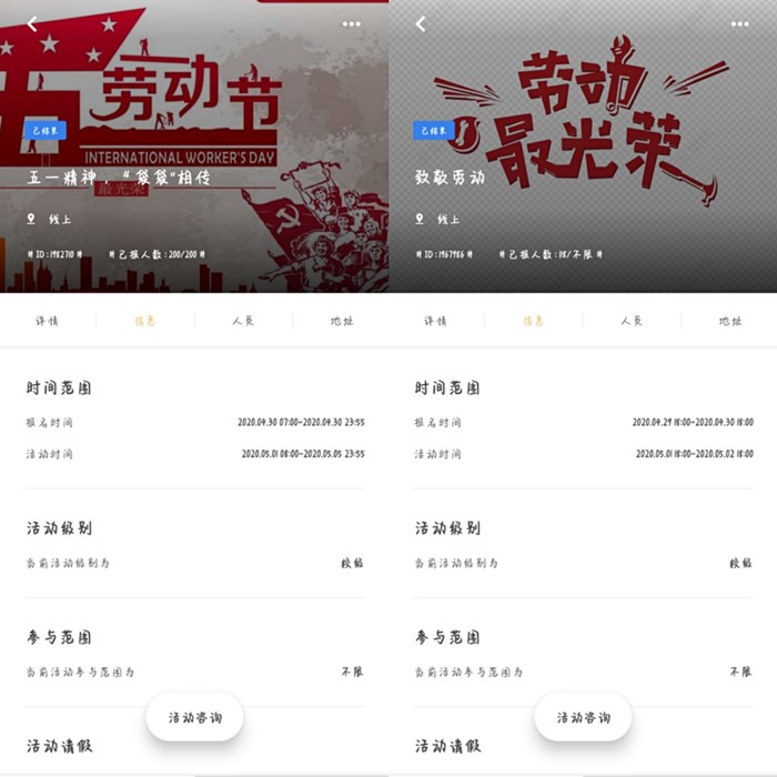 用双手诠释价值,用肩膀撑起责任。青年志愿者协会举办“五一精神,‘袋袋’相传”主题活动,号召同学们通过手工制作环保购物袋来树立环保意识,展现青年担当,传递社会正能量;由考研协会主办的“致敬劳动”活动,旨在让参与者通过参加社会劳动,创造青年价值,并在亲身实践中领悟劳动的真谛,激发起对劳动者的崇高敬意。