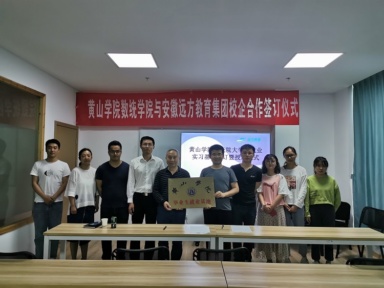 5月14日下午,数学与统计学院和安徽远方教育集团在黄山市屯溪区远方教育分公司举行就业基地授牌仪式。该院党总支书记方继光、副院长胡建伟、数学与应用数学教研室主任胡玲、辅导员陈伟龙与安徽远方教育集团负责人程智超等相关人员参加了授牌仪式。
