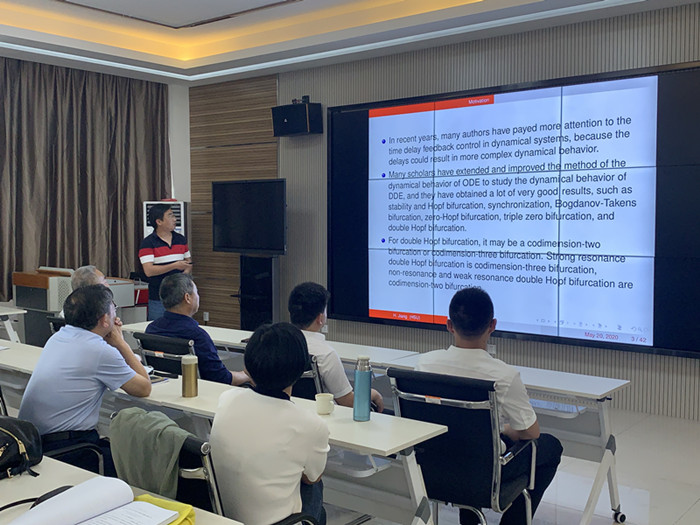 5月27日,数学与统计学院蒋和平老师在横江校区图书馆附楼301举办题为《时滞微分系统中弱共振与非共振双Hopf分支问题》报告会,报告会由该院院长汪宏健主持。