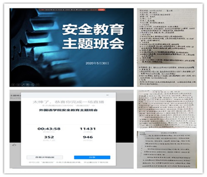 近日,外国语学院组织辅导员利用钉钉、QQ等网络平台召开线上班会,向同学们普及和强调安全知识。