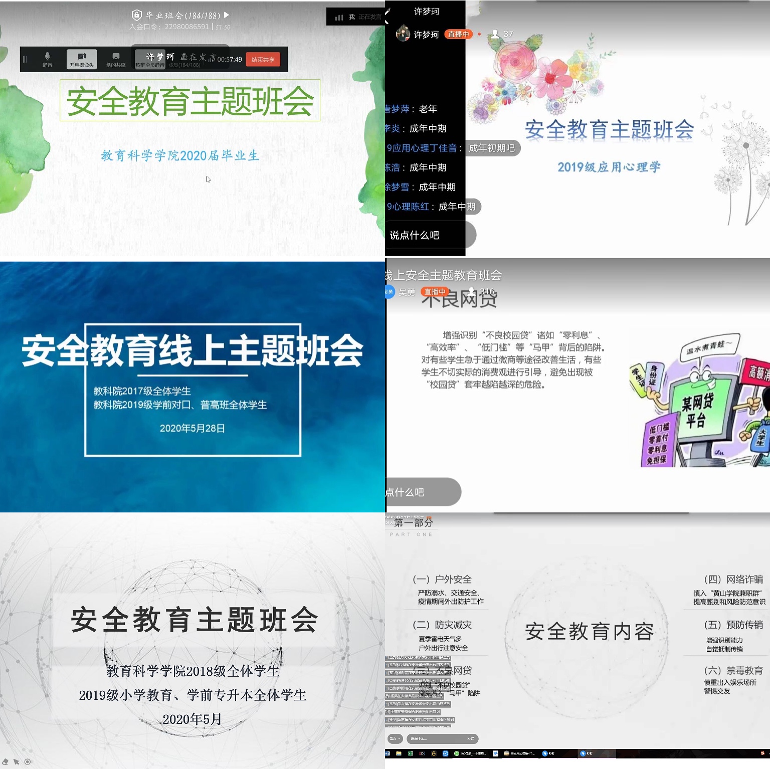 近日,教育科学学院各班级辅导员通过钉钉平台,召开了线上安全教育主题班会。