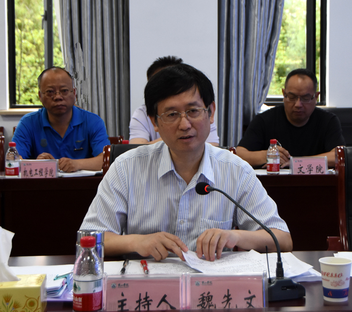6月4日,省教育厅专家组来校督查指导合格评估整改落实情况。上午,学校在率水校区文汇楼三楼会议室召开专家组见面会,专家组组长、安徽工业大学党委副书记、校长魏先文教授,专家组成员安徽工程大学副校长叶常林教授、安徽师范大学皖江学院院长李子华教授、合肥师范学院教务处长胡昂教授、安徽工业大学教务处长郑啸教授出席会议,校领导汪枫、李铁范、胡家俊、胡善风、刘英旺、张德学、陈家祥参加见面会。
