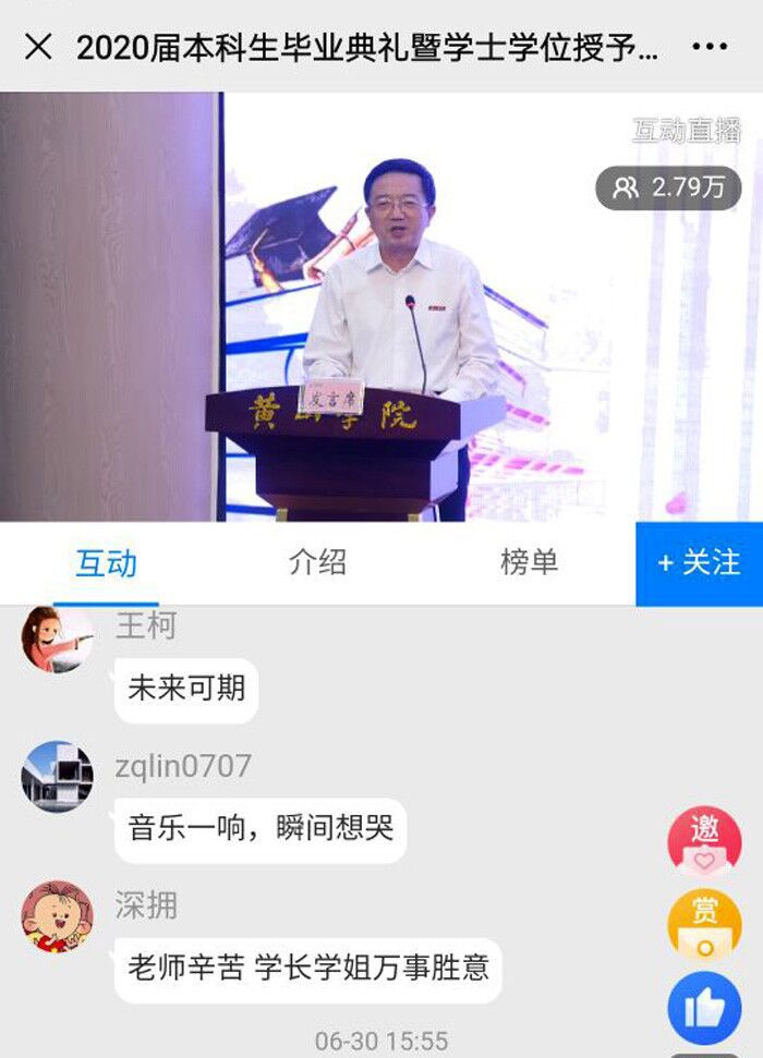 根据疫情防控的需要,今年的毕业典礼采用线下线上相结合的形式。各专业毕业生代表、优秀毕业生代表现场参加了毕业典礼,近2.8万名毕业生、毕业生家长、校友通过现场直播参加了“云毕业典礼”。