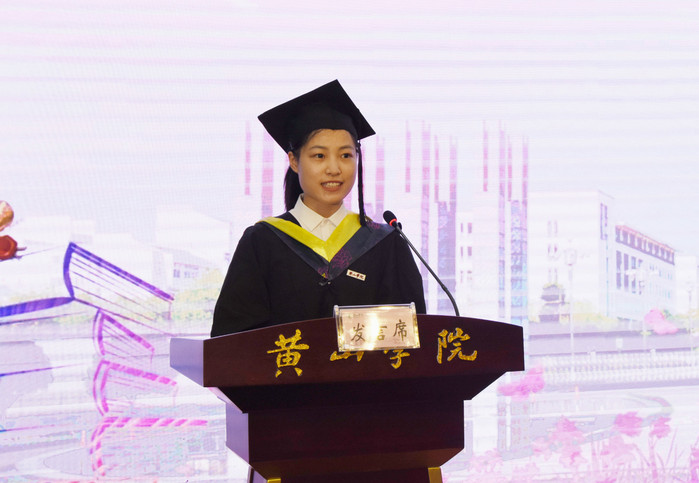 文学院2016级学生马明月同学代表毕业生发言,她表示,在今后的人生道路上,会谨记教诲,求真务实,为母校增光添彩,祝愿母校的明天越来越好!