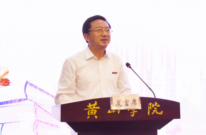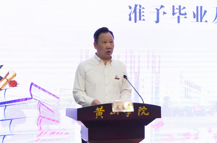 化学化工学院教授柯仲成代表教师发言,他向毕业生送上最衷心的感谢与最美好的祝福,并希望同学们要坚持学习,在学习中不断完善和提高自己。