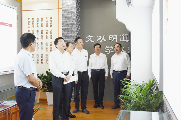 6月30日下午,校党委书记汪枫,党委副书记、校长李铁范,党委副书记胡家俊,副校长胡善风,党委委员、副校长张德学,党委委员、党委宣传部部长张赛,党委委员、教务处处长张小明一行参观考察文学院办学成果展示馆。