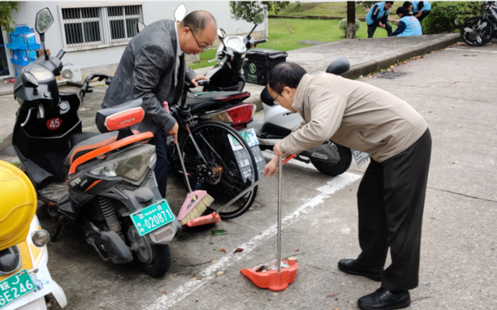 活动中,志愿者们对大学生活动中心、二食堂周边进行了集中清理整治。师生分工明确,对责任区内道路、绿地、绿化带进行卫生整治,清理大量垃圾,并对路面上的电动车进行集中摆放。