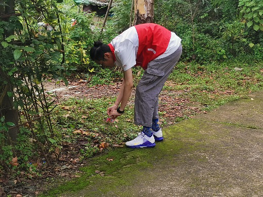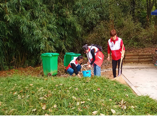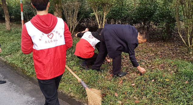 活动中,志愿者分组到达指定地点进行清扫。清扫过程中,志愿者们积极性很高,他们或是用扫帚堆起沉积的落叶,或是用手捡起路边的垃圾……