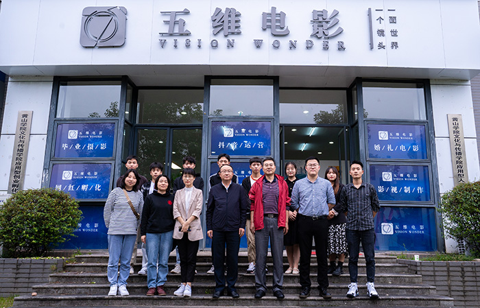 黄山五维电影工作室为文传学院2013级戏剧与影视专业毕业生刘杰于2018年4月在黄山市屯溪区创办的文化传媒公司,经过两年发展,公司现已初具规模,其专业实力和社会影响力不断提升,在业内享有声誉。2018年9月,文传学院在该公司合作设立“党建+创新创业基地”,为文传学院广编、戏文专业学生提供实践实训岗位。今年7月,文传学院将五维电影工作室引进校园,合作建设学院的业界实验室,作为文传学院应用型人才实践基地和大学生创业孵化基地。当日下午院领导老师与五维电影工作室团队成员交流座谈,共商建立文传学院业界实践实训平台和实施产教融合的举措机制,拟安排相关班级学生定期进入工作室学习训练、工作室组队参加学科竞赛、共同举办品牌校园专业文化活动等。