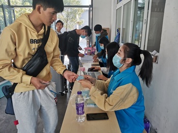 在各个宿舍楼报到点,易班发展中心的志愿者们用心服务,积极利用学工系统核对新生信息为新生办理线上入住手续,他们协助宿管中心做好一卡通、空调遥控器、卫生用具等发放工作,并提醒新生安全用电等入住注意事项。