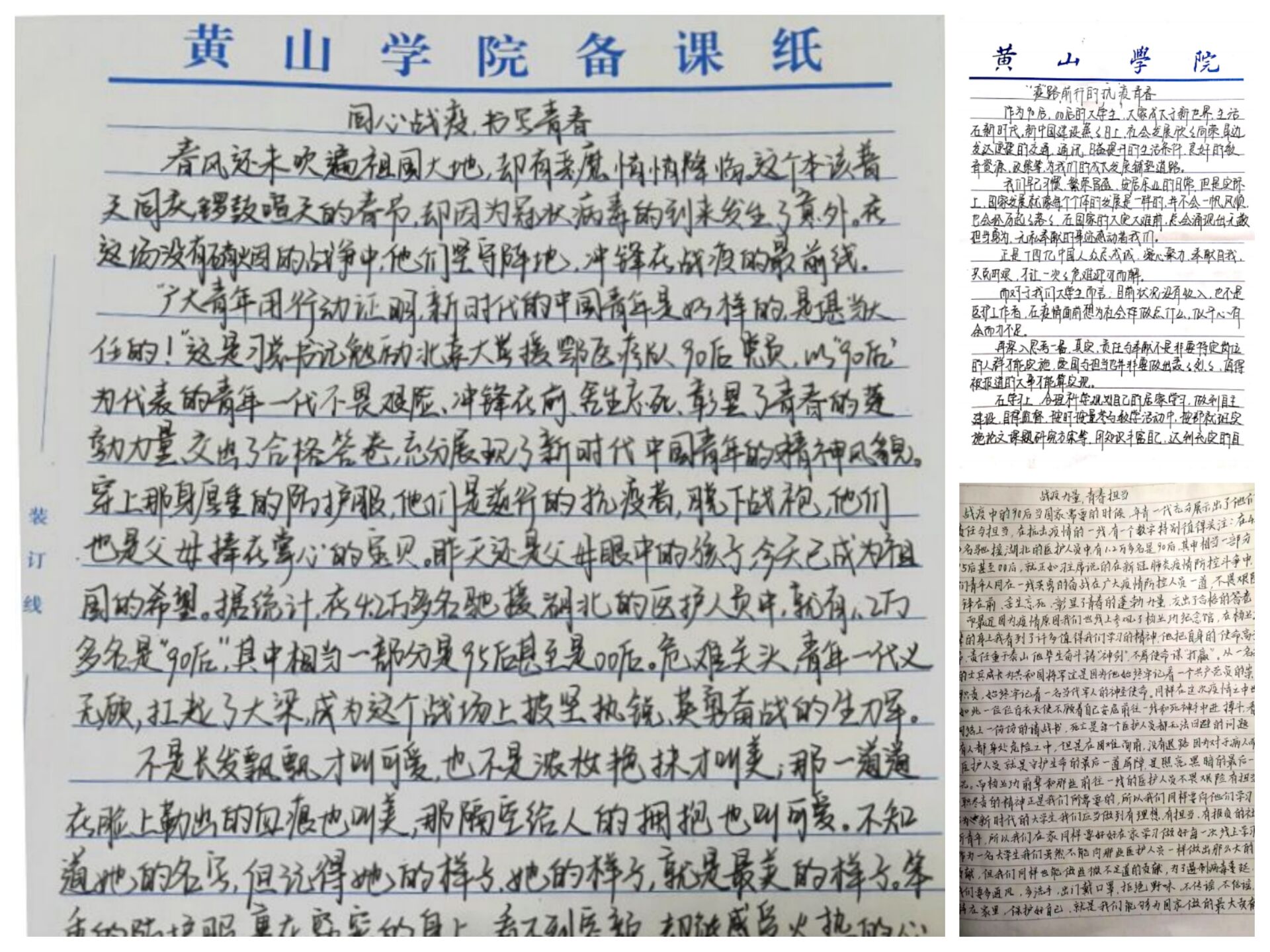 本次“书写抗疫青春”主题征文活动分为初赛和决赛,选手需要围绕征文主题和自己的抗疫经历书写文章,并在规定时间内投稿到指定邮箱。17建筑方程同学在文章中写到:“青年学生应该学会在疫情防控的关键时期成长,把握大局,演好角色,主动担当,有所作为。”徐葛同学在疫情期间积极投身抗疫事业,成为了一名青年志愿者。她感慨万千地说道:“对于我而言,虽然不能像那些优秀青年党员一样,在一线抗击疫情,但作为一名青年志愿者,通过实践行动贡献自己的力量,我感到非常荣幸,同时也坚信作为青年人必将不惧风雨,勇挑重任。”经评委打分商讨后,最终18建筑班潘鹤鸣获得一等奖,19土木二班杨刚和17建筑班方程获得二等奖,18建筑班张子妍、18建筑班徐葛、19工程造价班胡双霜获得三等奖。
