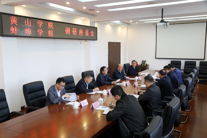 在蚌埠学院,汪枫一行与该校党委书记陈国龙,党委委员、副校长郭有强及相关部门负责人进行座谈交流,双方重点围绕党的建设、干部工作及岗位设置、绩效考核等方面进行了深入交流讨论。