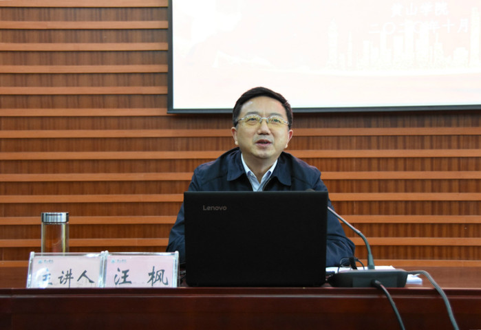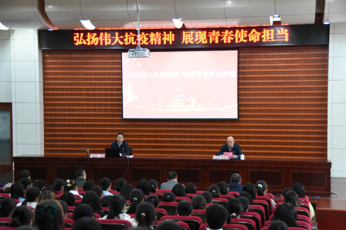 10月21日下午,校党委书记汪枫在逸夫图书馆二楼报告厅为2020级全体新生上题为《弘扬伟大抗疫精神展现青春使命担当》思政大课。思政大课由校党委副书记胡家俊主持。宣传部、教务处、文学院等院部负责人聆听了授课。