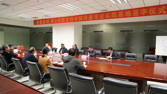 10月20日上午,文传学院与安徽广播电视台经济生活频道共建专业实践基地签约仪式在安徽广播电视台举行。安徽广播电视台党委委员、副台长邵晓晖,经济生活频道总监许梦凡,经济生活频道副总监尹强,文化与传播学院党委书记汪家庚,副院长王俊峰,党委副书记郑静及经济生活频道采编人员20余人参加签约仪式。仪式由尹强主持。
