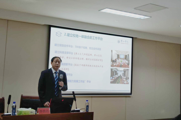 李铁范指出,我校长期以来坚持扎根地方,坚持“地方性、应用型、国际化”的办学定位,坚持“打好黄山牌,做好徽文章”,坚定走特色化的办学之路。我校依托黄山品牌优势、丰富的自然生态资源及徽州底蕴深厚、内容丰富的文化资源,不断彰显“旅游、生态、徽文化”的办学特色,在旅游类、生态类专业建设方面取得一定的品牌效应,已经成为安徽省旅游类人才培养示范基地、皖南生态文明建设的教学科研重地。他强调,围绕特色化办学,我校深入推进校地一体融合,不断完善校地一体融合的工作机制、丰富校地一体融合的工作平台、突出校地一体融合的工作重点。目前,我校基本形成了传承徽州文化的育人环境,拥有一批融入徽文化的课程资源、学生实践品牌活动以及主攻徽文化的科研成果。同时由于坚持“打好黄山牌,做好徽文章”,我校国际合作办学更具活力,已经成为安徽高校国际合作办学、国际学术及学生交流的重要力量。报告得到与会高校领导专家的一致好评。