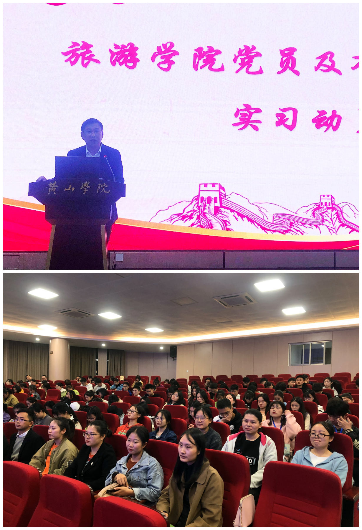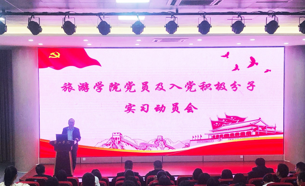 11月4日,旅游学院于文端楼报告厅召开2021届毕业班党员及入党积极分子实习动员会,旅游学院党委书记陶卫平,党委副书记、院长金声琅,党委纪检委员、副院长孙克奎、各支部书记、毕业班辅导员、全体专职辅导员、指导教师和2021届毕业班党员及入党积极分子参加此次会议。会议由金声琅主持。