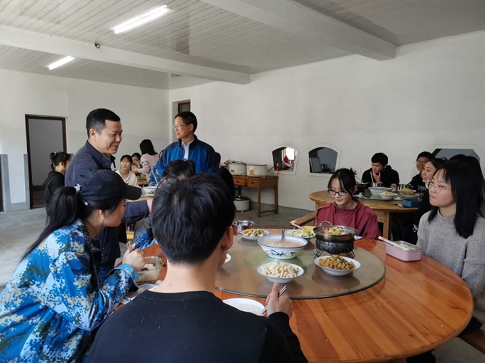 11月10日上午,生命与环境科学学院党委书记吕顺清,党委副书记、院长佘新松,园林教研室主任马涛,前往休宁县岭南林场看望正在参加《园林树木学》课程实习的师生。