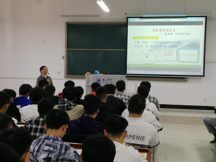 11月3日下午,孙海霞副教授在文端楼2311教室开讲教学示范课,孙海霞采用线上与线下相结合的翻转课堂教学模式,开辟“我的课堂我做主”环节,由大学生主持话题讨论,从上世纪80年代“大学生张华冒险救老农”事件开始说起,围绕“人生价值的评价方法”问题展开,之后,进入教师点评、提升和总结环节。孙海霞老师运用智慧教学工具,以生生互动和师生互动等,凸显学生为中心的思政课堂教学风貌。