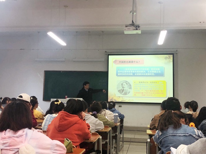11月9日下午,马勇虎教授在逸夫综合楼5105教室主讲教学示范课,马勇虎以“革命、改革和改良”为主题,围绕新文化运动发生的背景,引导学生思考和讨论革命和改革的近代话语转化问题,认为辛亥革命胜利了,但近代中国的民族、民主革命并未成功。五四运动提出“科学与民主”正是弥补旧民主主义革命的思想课。示范课以启发式教学授课,深入浅出,教学语言形象丰富。
