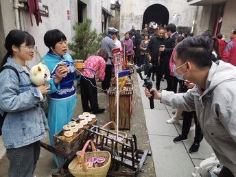 本次活动主要依托抖音平台对许村传统文化进行宣传,对许村的农产品、特色美食进行介绍。汪月红一行通过参与“品味歙县·自在乡村”许村摄影季的启动仪式和前期自主学习对许村传统文化有进一步的了解。直播中,直播人员介绍了学校易班发展中心的服务宗旨,分享了许村八大景、特色名俗和传统美食,为了让观众更好更直观的了解许村的特色文化,主播还多次采访当地居民,将当地特色民俗、美食分享给观众。此次直播展示活动,点赞量近一万人次,观众积极响应,互动良好。