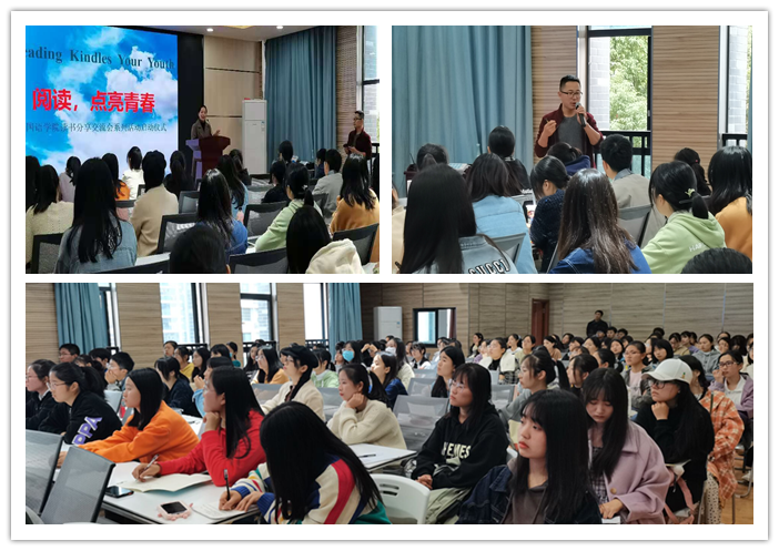 11月20日下午,外国语学院举办“Reading Kindles Your Youth”(阅读点亮青春)读书分享会系列活动启动仪式,并开展首场读书分享活动。活动由学院党委副书记张文静主持,该院教工第一支部书记郭飞主讲,百余名英语专业新生参会。