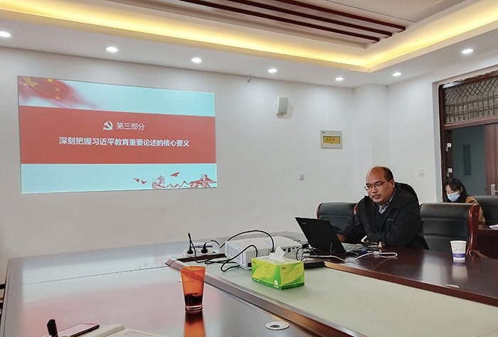 11月25日下午,文化与传播学院学习《习近平总书记教育重要论述讲义》专题宣讲报告会在院会议室举行。宣讲会邀请马克思主义学院副教授刘芳正博士主讲。文传学院党委书记汪家庚主持宣讲会,全体教师参加宣讲会。