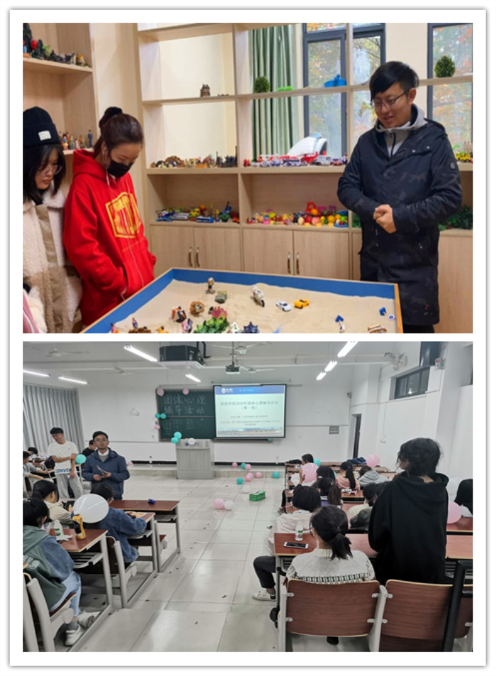 本次活动以一般团辅游戏、团体心理沙盘游戏为载体开展。一般团辅游戏中,章勤带领同学们参与了“你划我猜”“捆绑过关”“十指连心”“我有你没有”“对折大战”“筷子传球”等趣味团体游戏。杨潇带领同学们以寝室为单位,开展团体沙盘游戏。活动后,两位老师对活动进行总结,“在轻松的游戏中,希望同学们能够打开心扉、释放压力、树立积极的生活态度,学会以团队的形式携手解决问题,体验成功的喜悦,增强自信,在轻松、相互信赖的寝室团队中体验成长。”