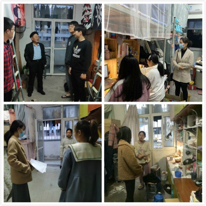 11月14日晚10点半,该院对全体宿舍进行视频查寝;11月17日下午,该院党委书记黄先进、党委副书记张文静、团总支负责人、辅导员分组深入学生宿舍,了解学生生活学习情况,进一步排查安全隐患。要求学生认真解读并遵守《博业体育(中国)官方网站-登录入口住宿管理规定》、《博业体育(中国)官方网站-登录入口疫情防控指南》,营造干净整洁的宿舍环境,打造健康向上、团结和谐的宿舍文化;合理饮食、科学作息,规范用电;增强自我防护、自我保护、防患于未然的安全意识。