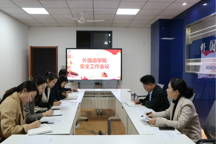11月17日下午,外国语学院党政领导和全体专兼职辅导员在5406会议室召开安全教育工作会议。会上,学院党委书记黄先进传达了学校安全稳定工作纪要精神,强调要把安全稳定作为开展学生工作的出发点,要求全体专兼职辅导员认真做好宿舍安全教育和传染病预防,切实保障学生人身和财产安全,强调要在全院范围内开展宿舍卫生检查、网络防诈骗安全教育活动以及疫情防控措施自查工作。学院党委副书记张文静领学了《国家宗教事务条例》,通报了学院近期学生违纪、因病请假情况,并对安全主题教育系列活动进行布置。