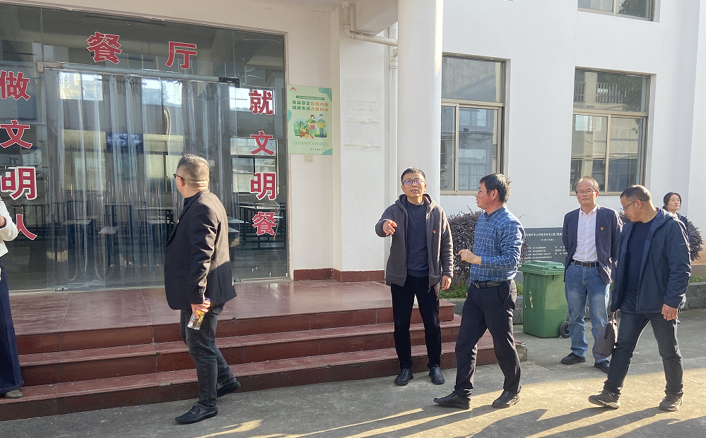 朱勇一行参观了洪里初中的学生宿舍、学生食堂等,现场了解、学习洪里初中后勤服务管理模式。