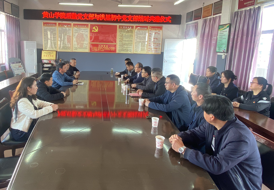 为进一步发挥党建引领作用,夯实基层党建工作,提升集团党建工作水平,以共建促党建,提高党支部的创造力、凝聚力和战斗力,切实加强党支部之间的学习交流,3月21日下午,后勤服务集团党支部与休宁县洪里初中党支部开展结对共建活动。