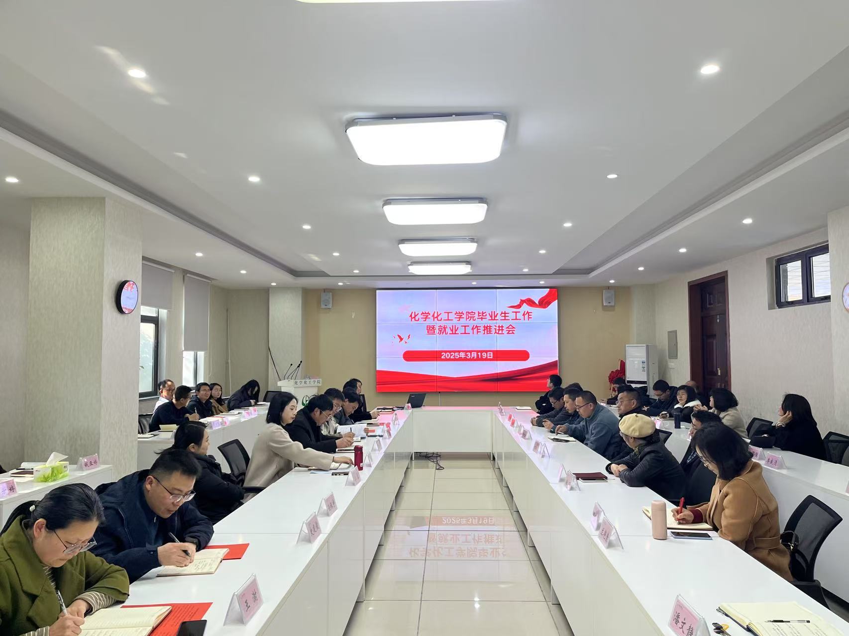 为进一步推动毕业生各项工作开展,提升就业工作质量,3月19日下午,化学化工学院在逸夫综合楼5316会议室召开2025届毕业生工作暨就业工作推进会,学院全体教职工参加会议,会议由学院党委书记叶双峰主持。