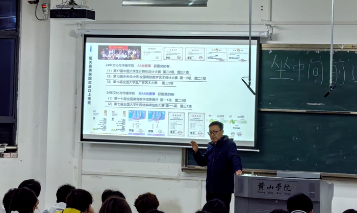 3月23日,新闻学专业教师汪海波以《以学科竞赛为抓手,赋能高质量人才培养》为题,深入解读“未来设计师大赛”“全国大学生广告艺术大赛”等赛事的备赛策略。通过展示往届获奖作品,引导学生挖掘专业优势,鼓励学生跨专业协作。讲座号召学生立足专业特色,敢于创新实践,在赛事中实现“以赛促学、以赛促创”的良性循环。