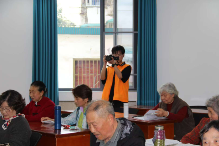 现场氛围温馨,吸引众多社区老人踊跃参与。学院志愿者借助专业设备,抓拍老人们唱歌时的专注、交谈时的轻松,以及查看乐谱、合奏乐器时的认真与默契。