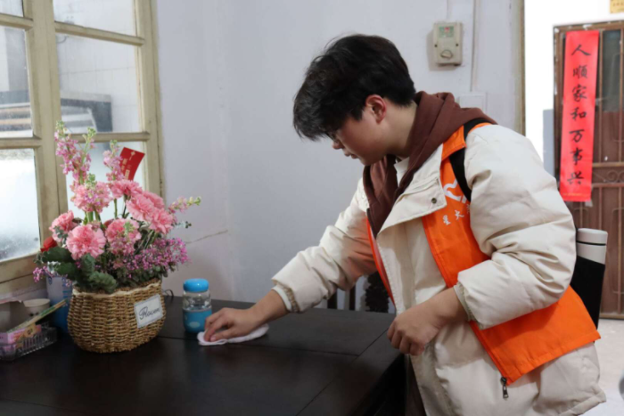 活动中,志愿者们分为两组,开展“多对一”的集中服务与“心灵慰藉”陪伴服务。针对行动不便、居住环境较差的老人,志愿者们进行深度清洁,帮助改善老人的居住环境;同时,通过聊天交流、倾听心声,给予老人心理疏导和精神慰藉,缓解他们的孤独感。活动负责人邵舒舒表示:“我们希望通过结对帮扶的形式,让老人感受到社会的关爱与尊重,同时也让志愿者在实践中培养奉献精神和社会责任感。”