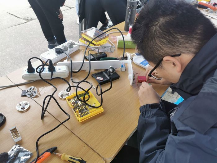 早晨九点,维修队员就已到达维修地点,随后将工具摆放整齐并通上了电。维修队员们认真对待送修人员,将收到的电器一一登记,认真检查故障,确认修理好后,及时联系对方取回。最终,成功修理好20多件家电。