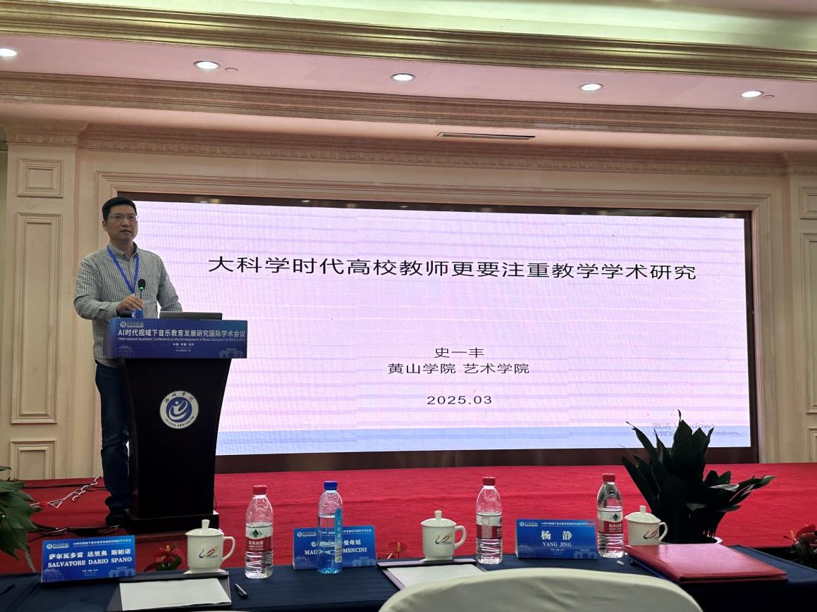 3月27日上午,“AI时代视域下音乐教育发展”国际学术交流会议在池州学院举行。池州学院校党委副书记、校长王先柱,安徽省政府参事、安徽省钢琴协会副主席、安徽艺术职业学院教授吴小舟,池州市文联党组书记章雄军,三位意大利专家,省内多所高校院长、教授应邀参会。艺术学院副院长(主持工作)史一丰带队,音乐学教研室主任徐天维,音乐教师王莹、李英卓一行4人共同参会。